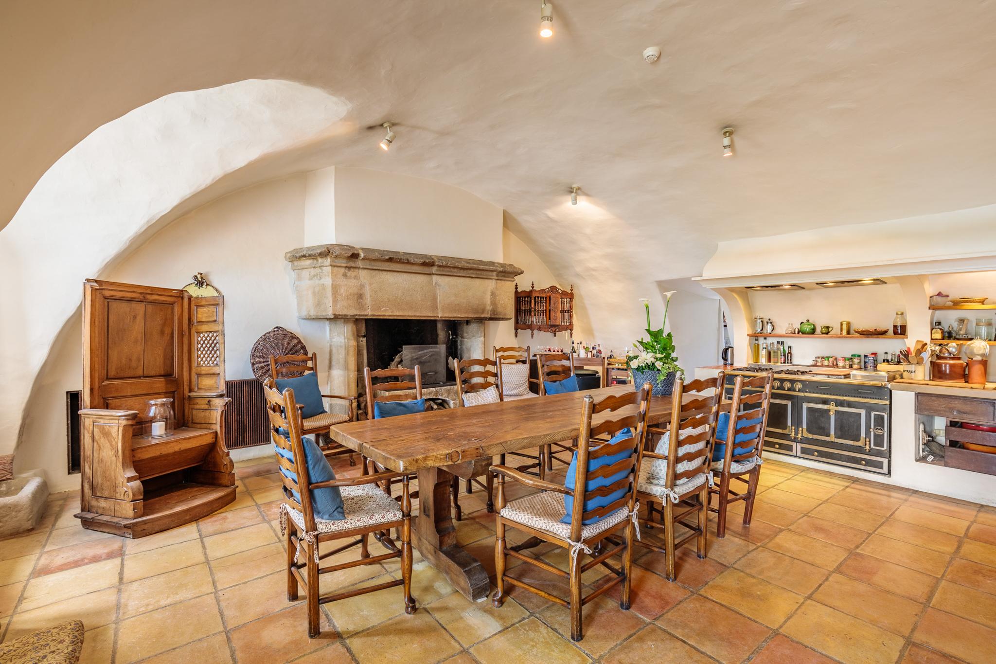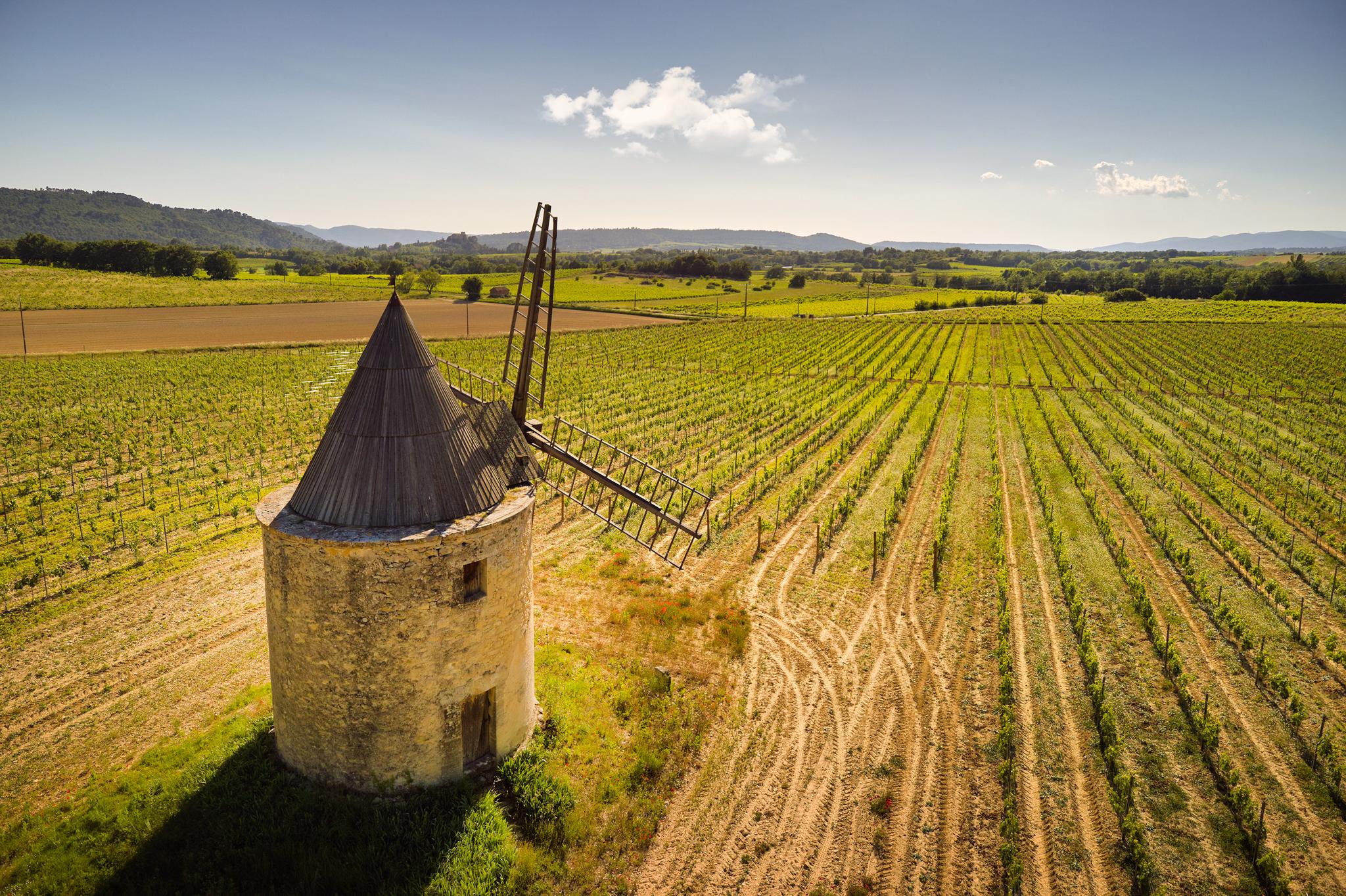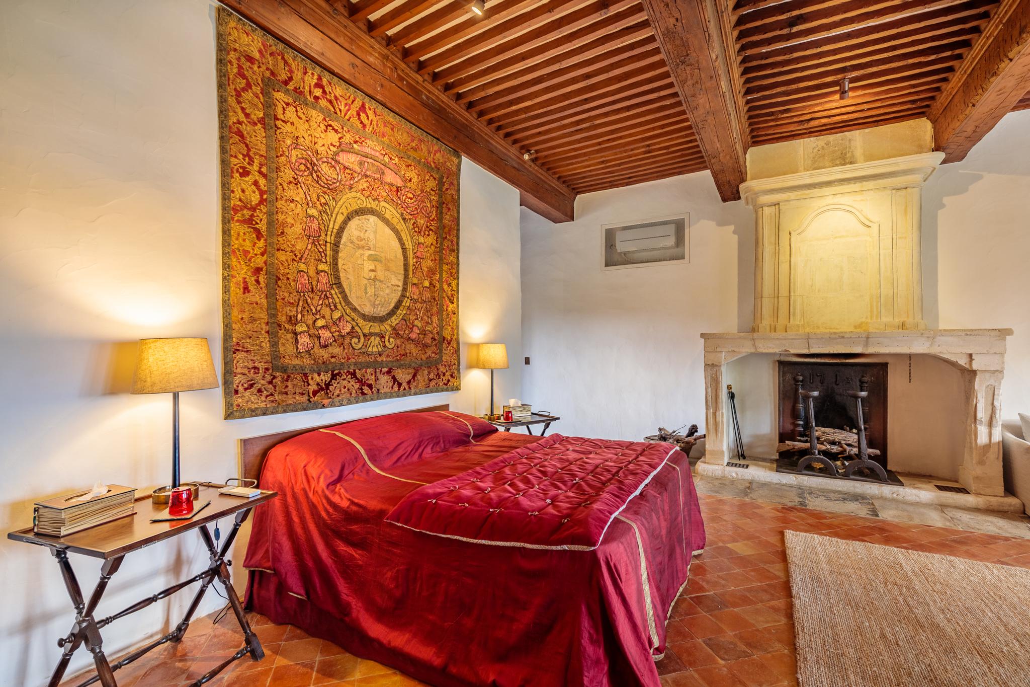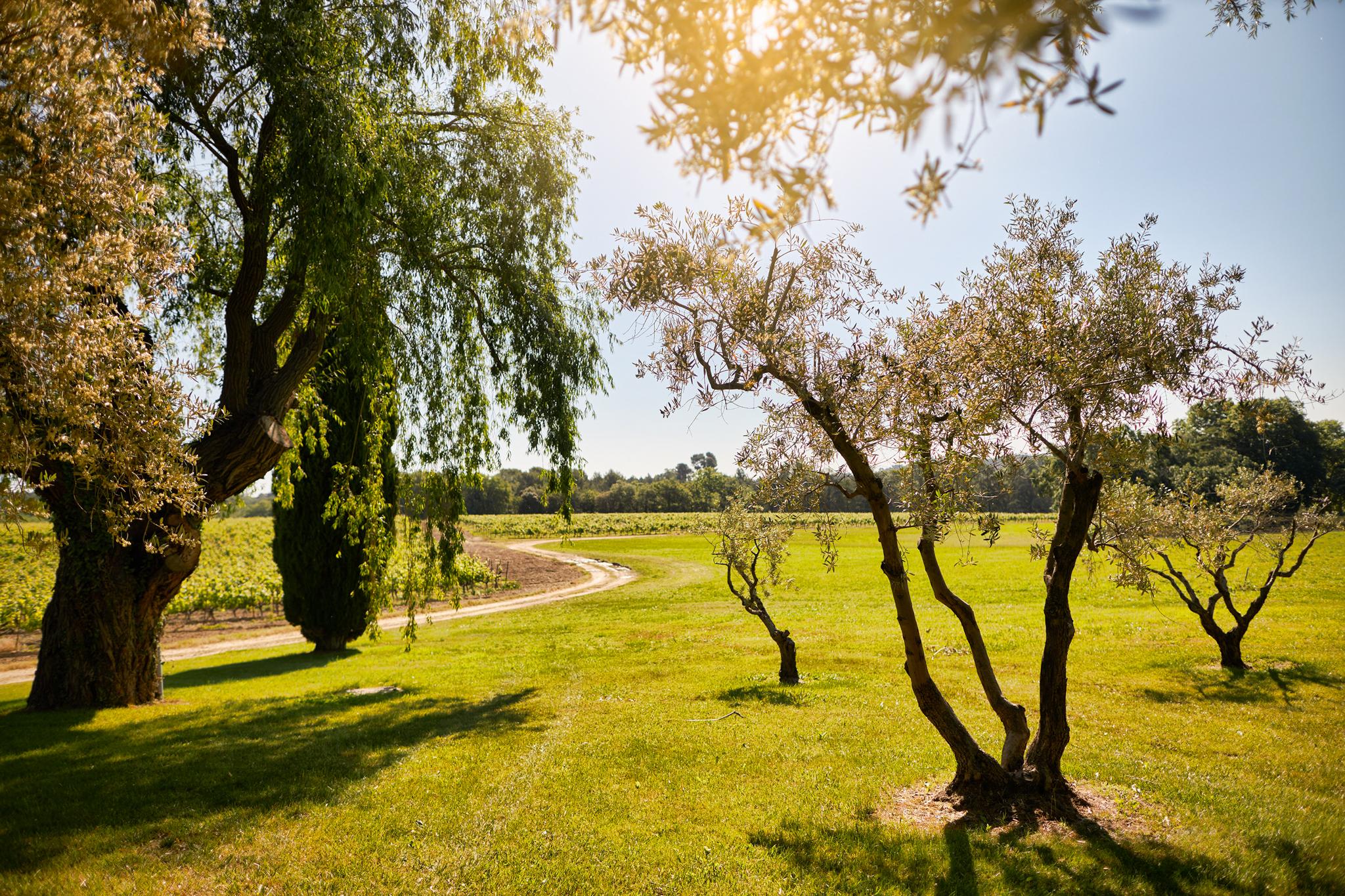 À l’extérieur, le parc, un étang et les vignes à perte de vue. Au bord de la grande piscine en pierre de 20mx7, on admire le château, les jardins et le moulin.