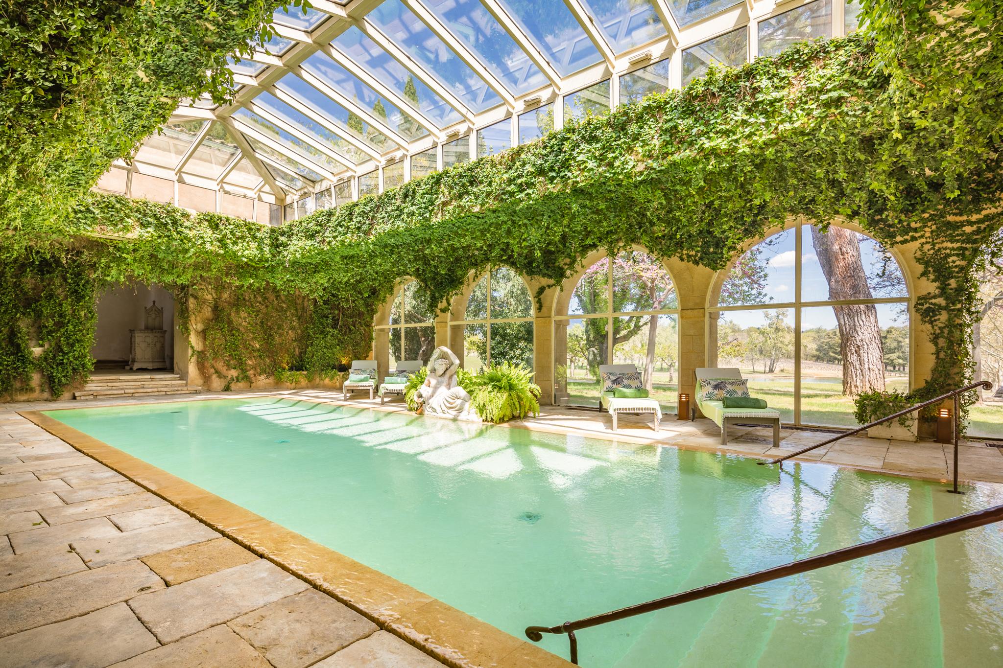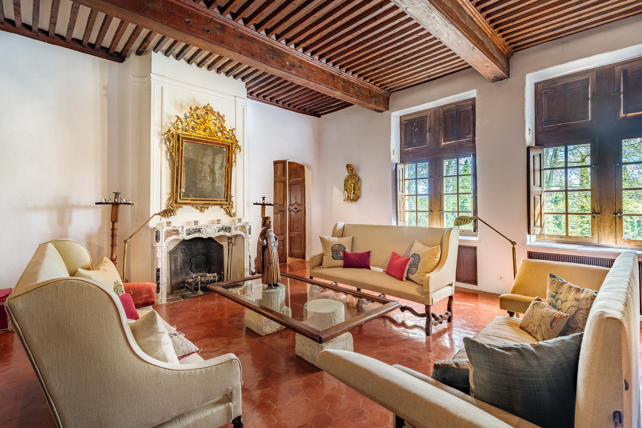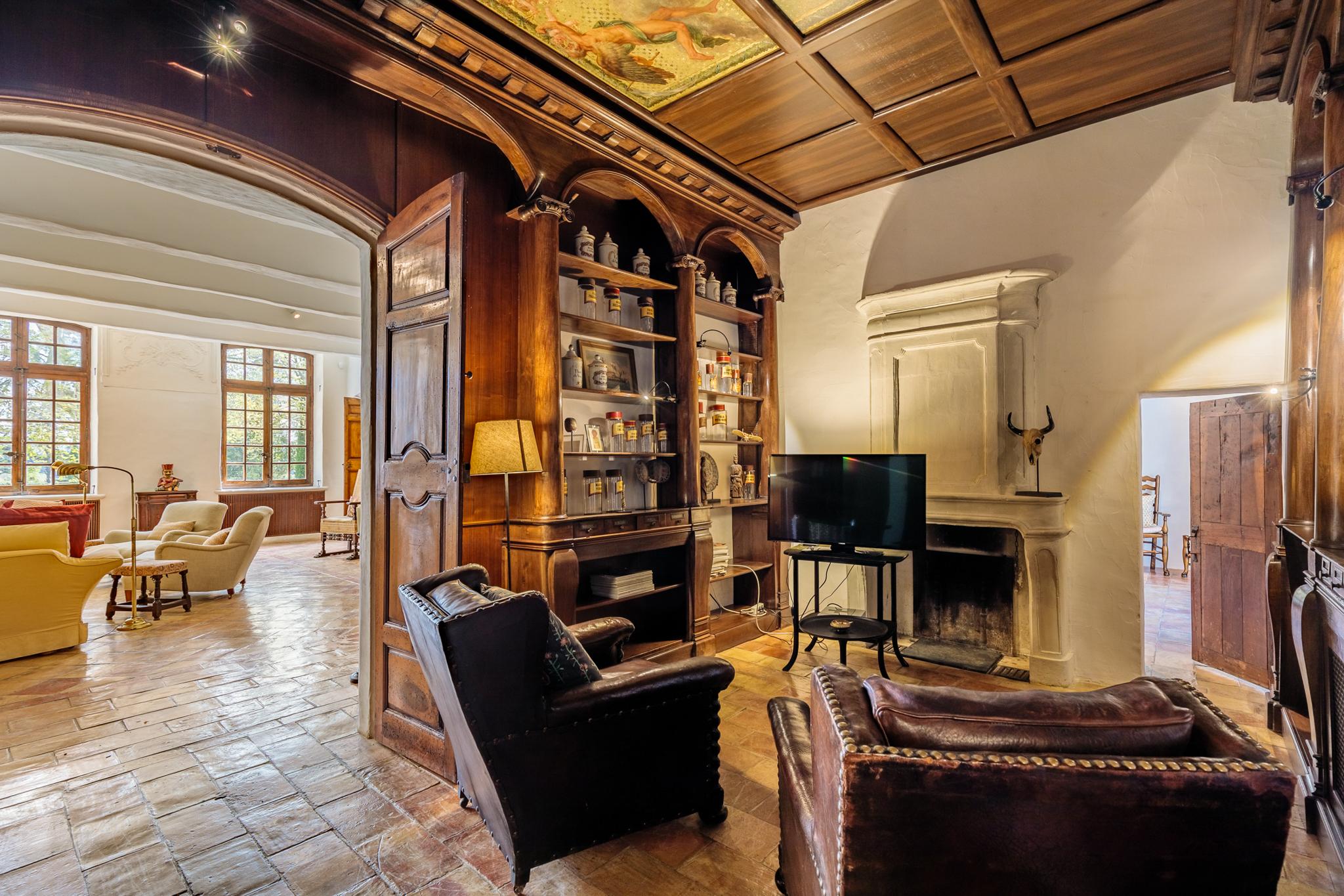 Une longue allée bordée de platanes vous conduit tout d’abord au château dont les origines remontent au début du XVIIème siècle. Les pièces sont évidemment vastes : cuisine voutée, salle à manger, salons, boudoir, pièce de billard. Sur les deux étages, 7 chambres doubles, toutes climatisées avec salle de bain privative. Une piscine intérieure sous verrière et une salle de gym complètent la bâtisse.