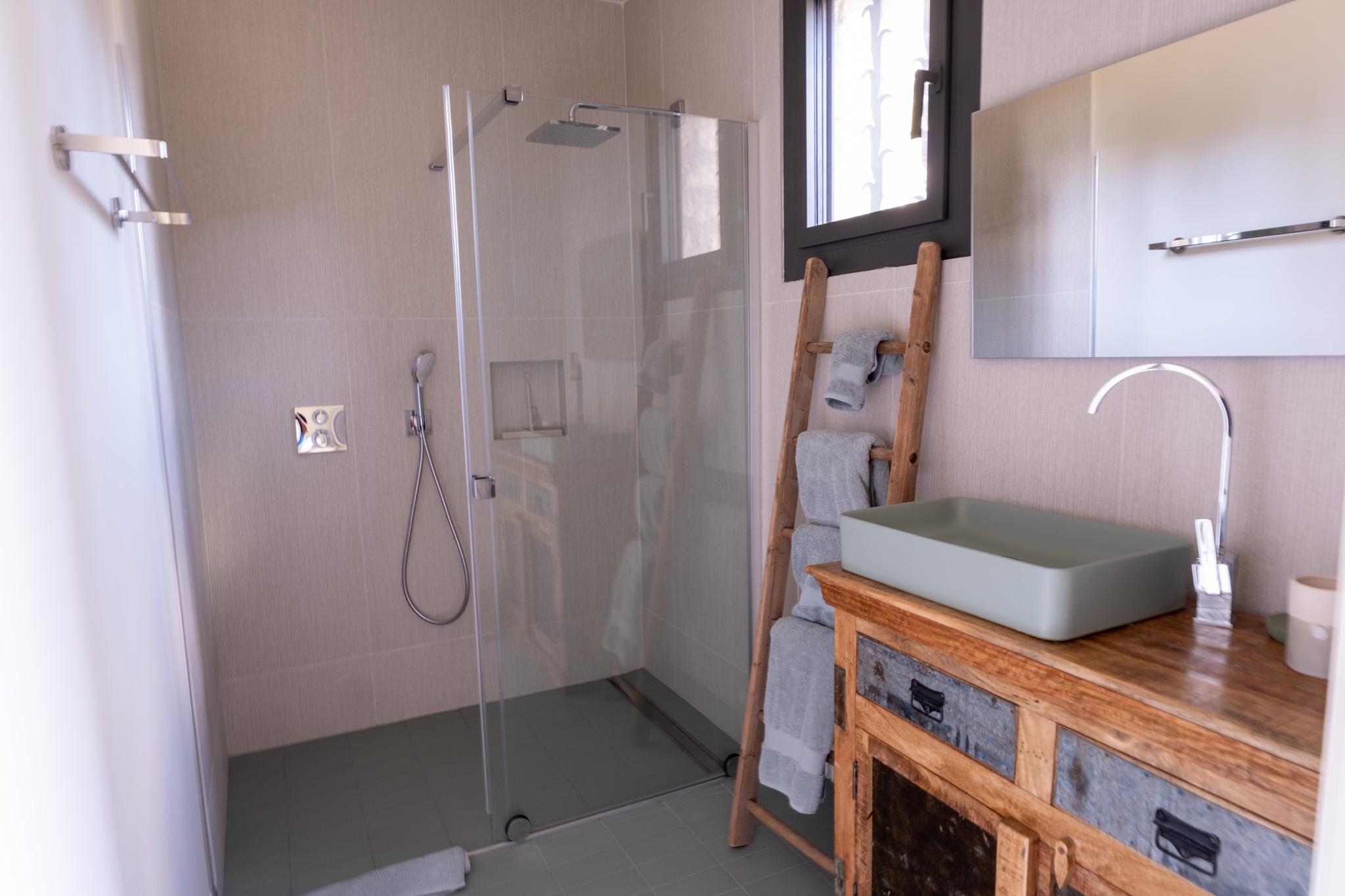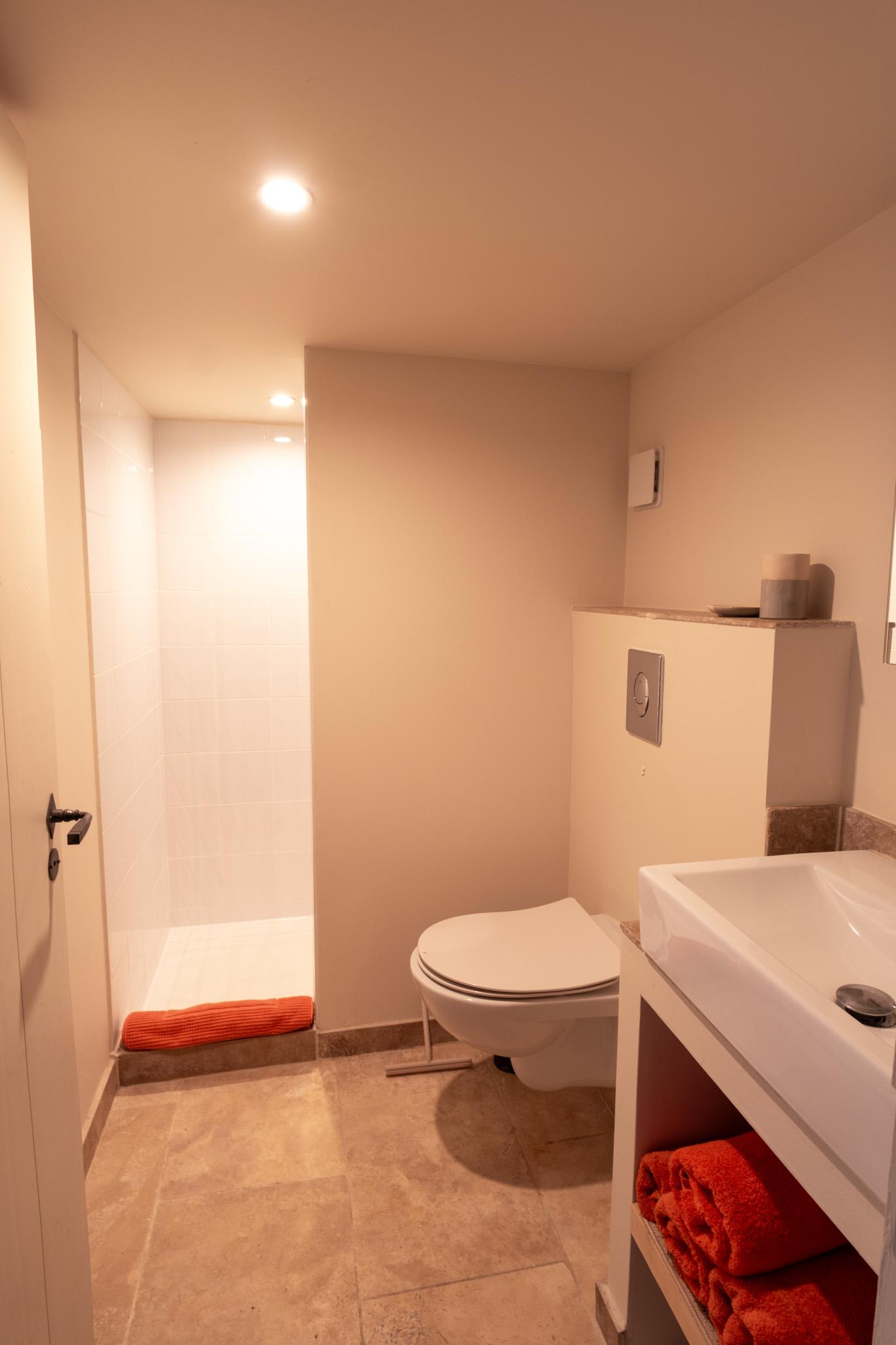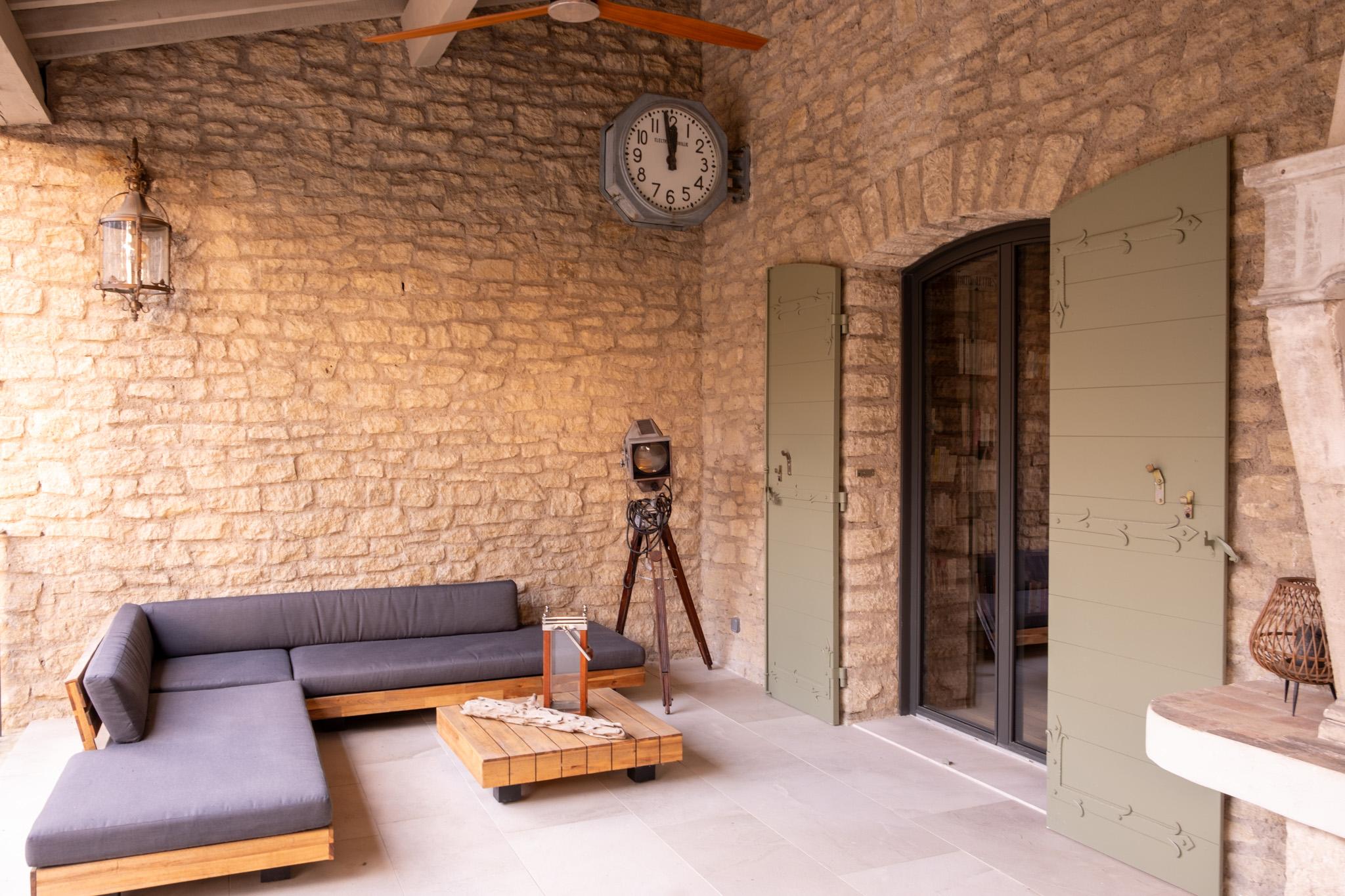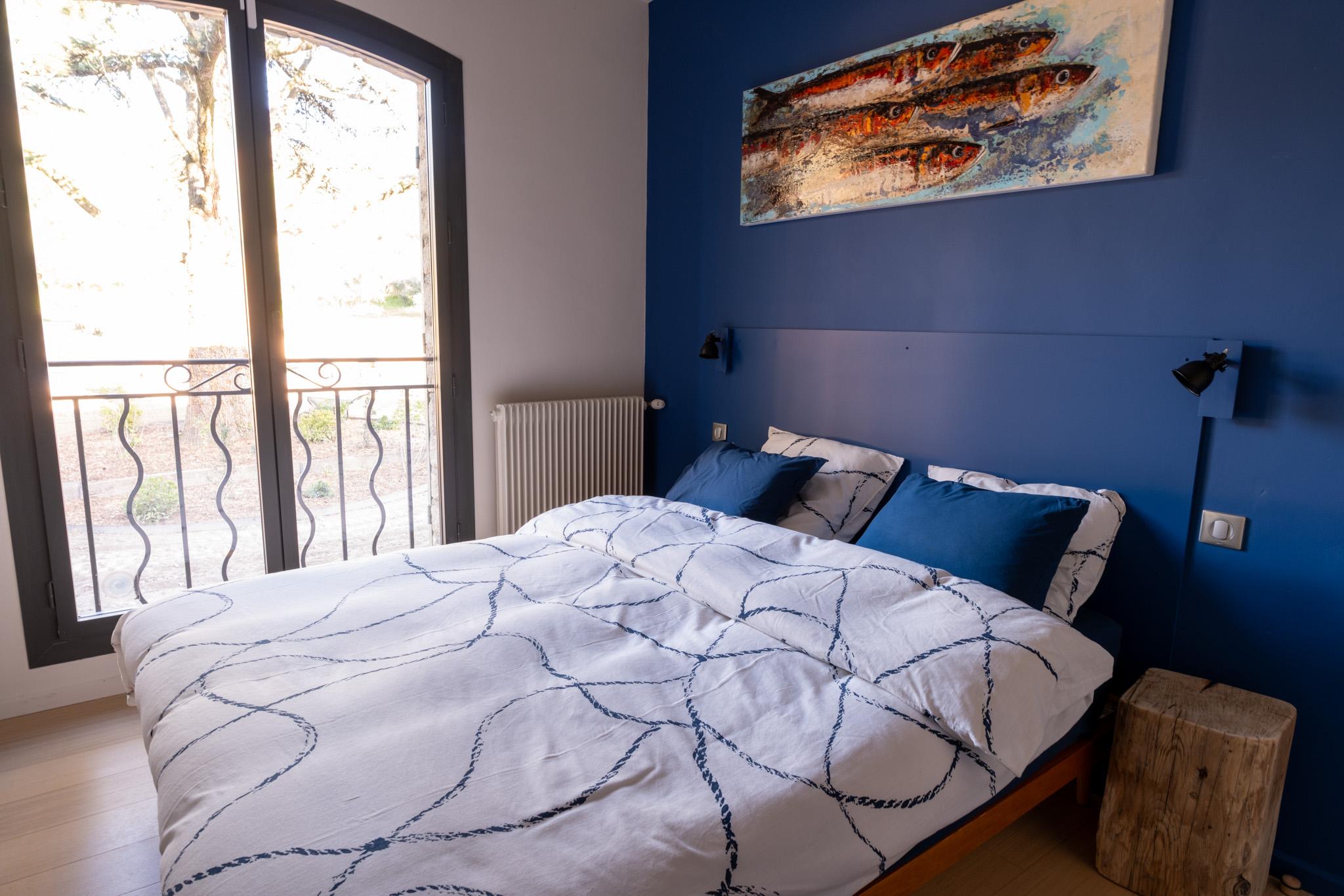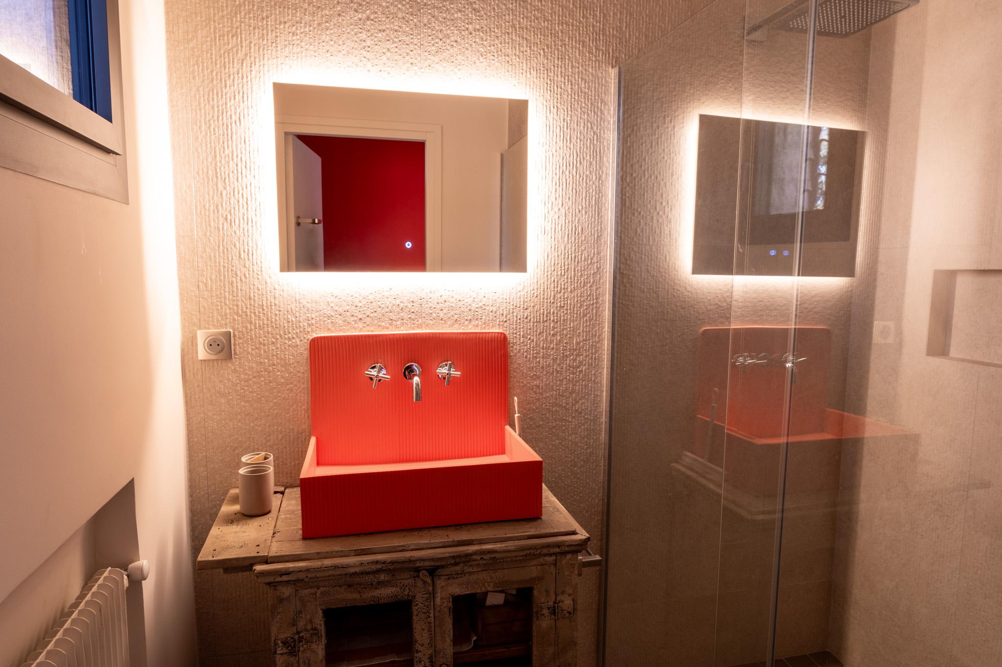 La maison, entièrement climatisée, propose de beaux volumes, baignés de lumière naturelle. Au rez de chaussée, un grand hall d’entrée mène au salon – salle à manger au magnifique parquet brut et insert cheminée. La cuisine ouverte propose des équipements haut de gamme tel un piano Lacanche et tout ce dont vous aurez besoin pour votre séjour. Au choix, deux agréables terrasses où déjeuner et dîner selon la saison.