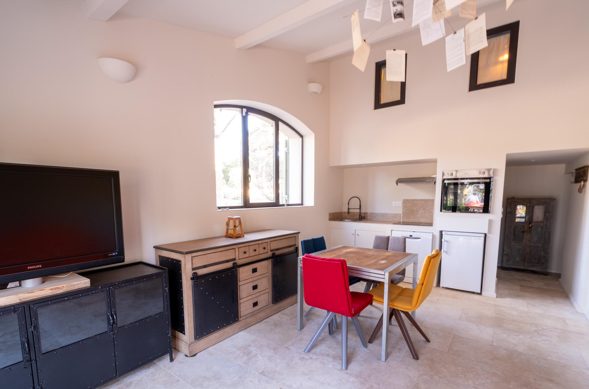 À l’extérieur, les espaces à vivre sont nombreux, pour permettre à chacun, activités et indépendance : une belle terrasse au sud dominant la campagne environnante, une magnifique piscine chauffée de 12,5x 4 mètres avec un salon maçonné pour se détendre ainsi que le terrain de pétanque tout proche, une terrasse au nord parfaite pour les étés chauds avec table à manger et plancha, un vaste jardin paysagé mêlant oliviers et essences méditerranéennes et un ponton dans les hauts de la propriété pour admirer les splendides couchers de soleil. Les possibilités de balades et randonnées sont nombreuses sur les sentiers partant du mas.
